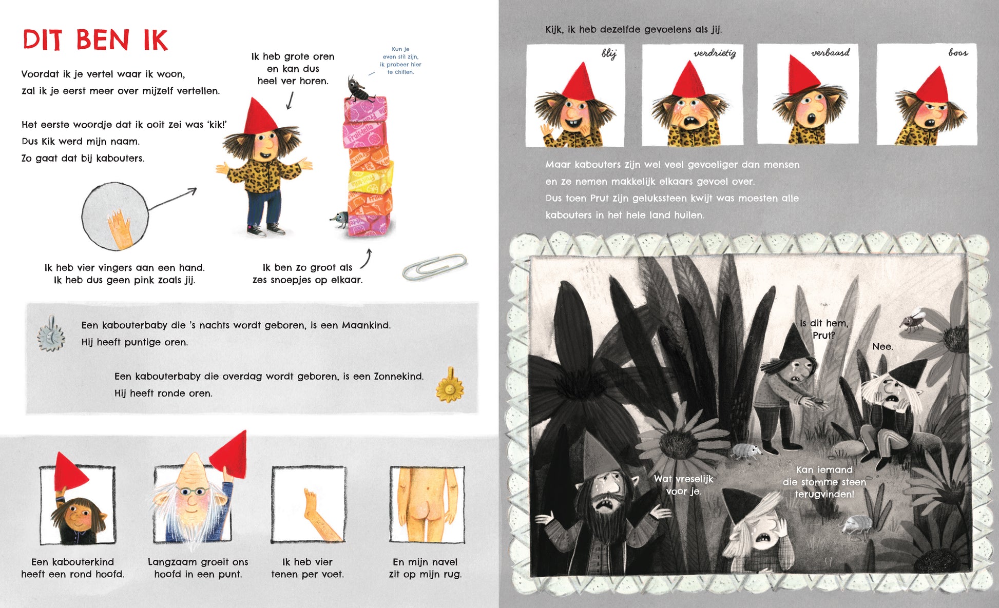 Kleine kabouter Kik neemt je mee in de wereld van de moderne, stadse kabouter. Ontdek hoe kabouters leven, wat ze de hele dag doen en knutselen en hoe ze zich zo goed verborgen weten te houden. Of het nu het stappenplan is voor het maken van een kaboutermuts of een dwarsdoorsnede van een kabouterhuis..